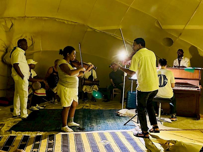 Who: Alexander Cachacha – percussion, Willy Kotoun – percussion, Jorge Luis Carcasses Ramirez – percussion, Lazaro Monteagudo – dance, Reinier Powell – dance, Mervin Fernandez Piedra – piano, Leandro Irarragorri – piano, Ledian Mola – violin and composition, Silvia Renuka Staubli – vocals, Eden Sekulović – cello, Isabel Mederos – violin, Sylvie Fröhlicher – curatorial text