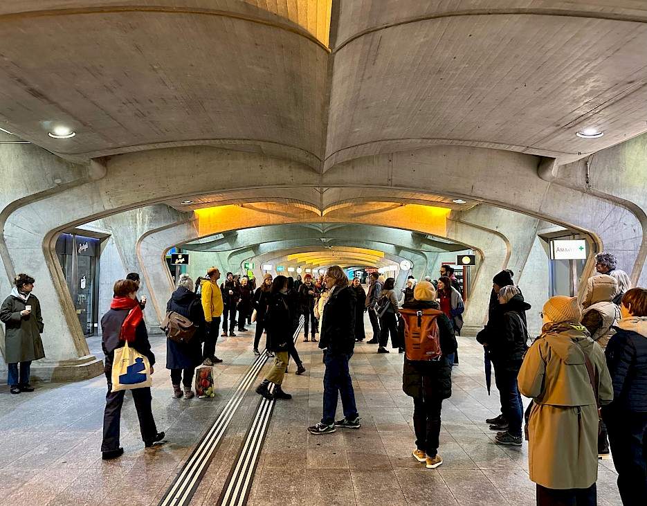 Ein Geh-Ritual zur Einstimmung der Ohren auf die verschiedenen Frequenzen von Wasser, Vögeln und Lebensräumen. Melo Chua (Flöte) und Constanza Pellicci (Stimme) spielen kleine improvisierte Stücke, in denen sie Beziehungen zur Klanglandschaft herstellen, während Andres Bosshard die Teilnehmenden zu einer verkörperten Art des tiefen Hörens anleitet. Es ist eine Einladung, sich der verborgenen Musikalität in unserer alltäglichen Umgebung bewusster zu werden, damit wir sensibler für unsere Anwesenheit im weiteren Ökosystem werden können.
